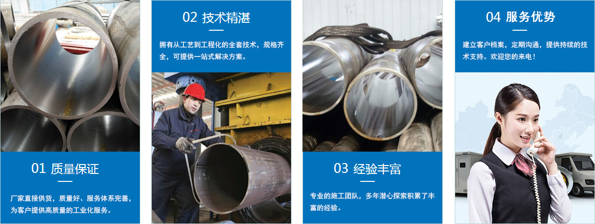 目前公司品種規(guī)格為:內(nèi)徑直徑30mm—300mm,壁厚為2mm—40mm。技術(shù)條件為:內(nèi)孔精度H5—H10,內(nèi)孔粗糙度Ra≤0.63um,直線度≤0.3mm/m。鋼號(hào)是20#—45#、16Mn、27SiMn及部分低合金鋼,標(biāo)準(zhǔn)GB8713-88。規(guī)格為40-300*2-40MM,長(zhǎng)度為2-12M的各種類(lèi)型油缸管,年產(chǎn)銷(xiāo)售能力3萬(wàn)噸。公司設(shè)備先進(jìn),工藝優(yōu)化,檢測(cè)手段完善。